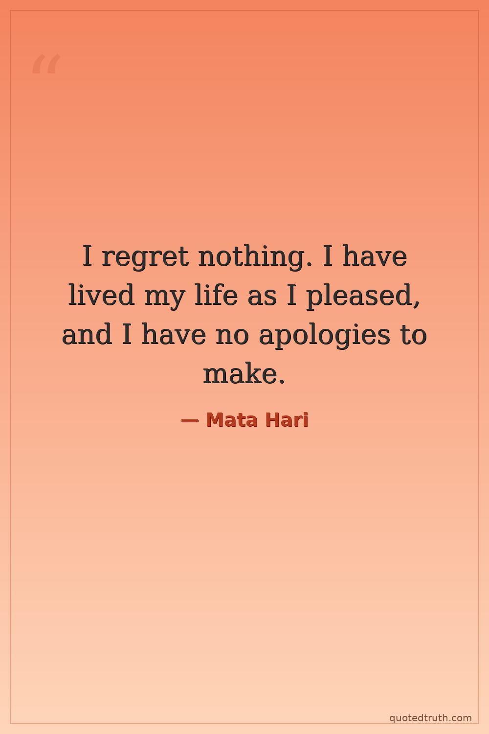 I regret nothing. I have lived my life as I pleased, and I have no apologies to make.