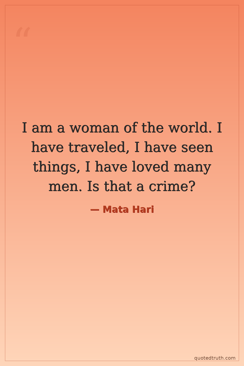 I am a woman of the world. I have traveled, I have seen things, I have loved many men. Is that a crime?