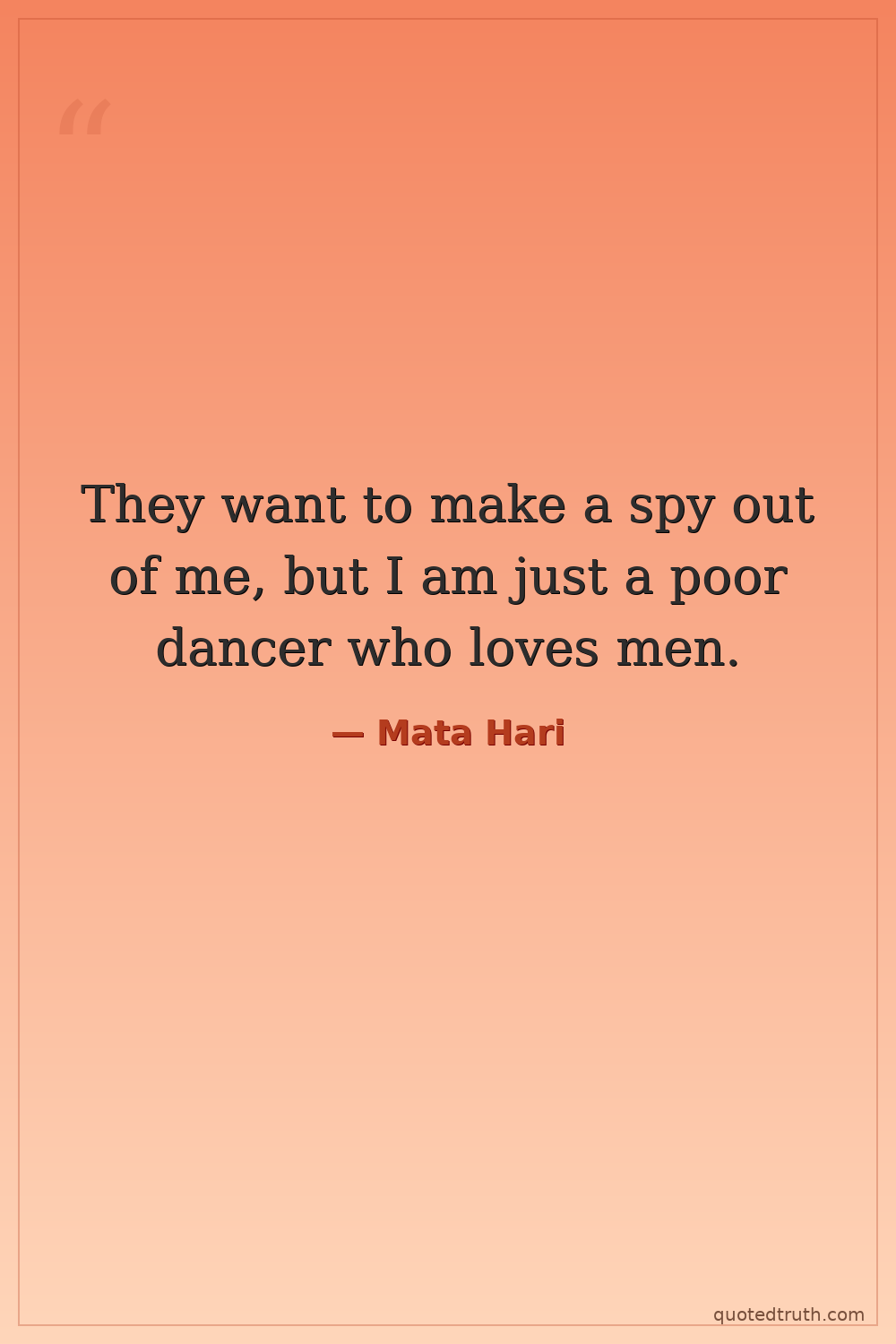 Humorous"I am a dancer, not a spy. I have danced for kings and princes, for generals and ministers. I have danced for the love of dancing, and for the money it brings."