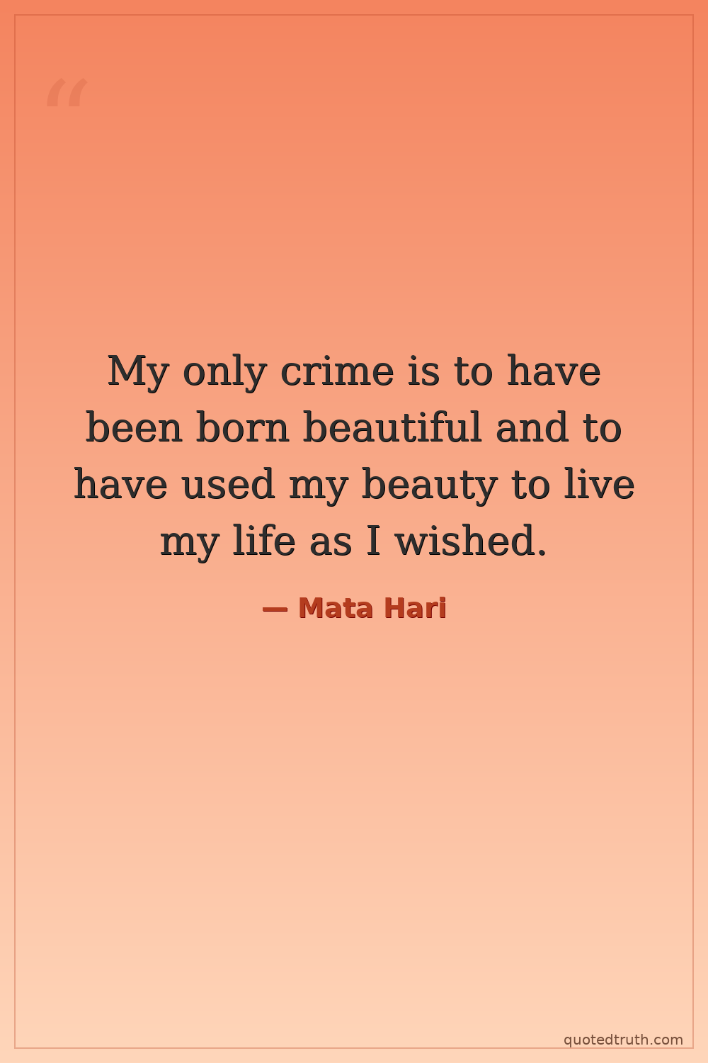 My only crime is to have been born beautiful and to have used my beauty to live my life as I wished.