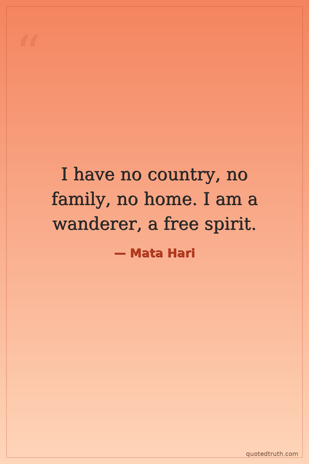 I have no country, no family, no home. I am a wanderer, a free spirit.