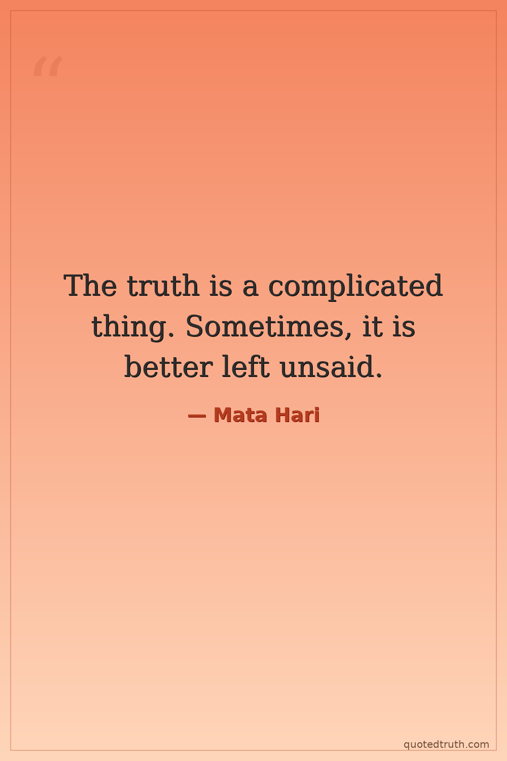 The truth is a complicated thing. Sometimes, it is better left unsaid.
