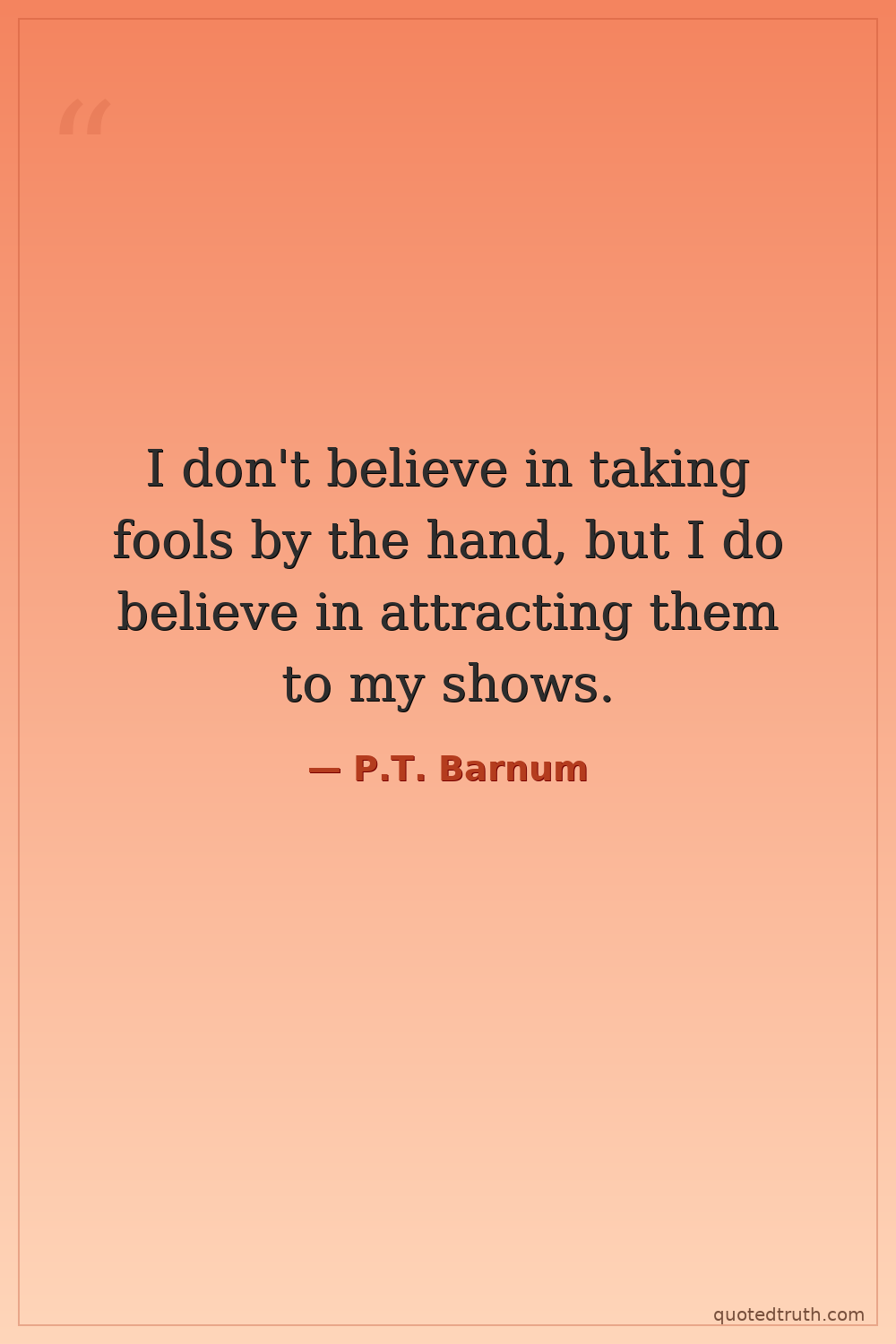 I don't believe in taking fools by the hand, but I do believe in attracting them to my shows.