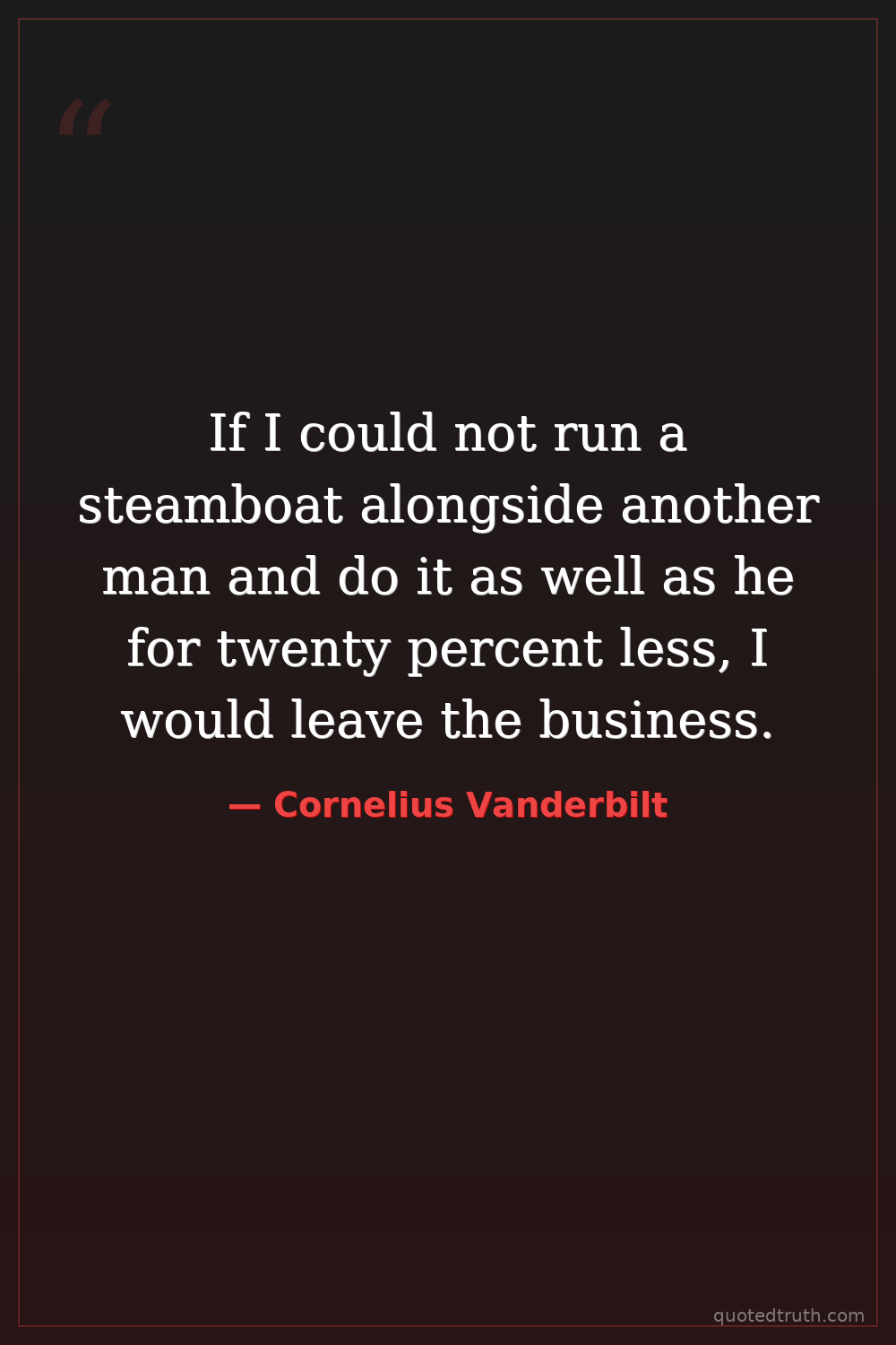 If I could not run a steamboat alongside another man and do it as well as he for twenty percent less, I would leave the business.