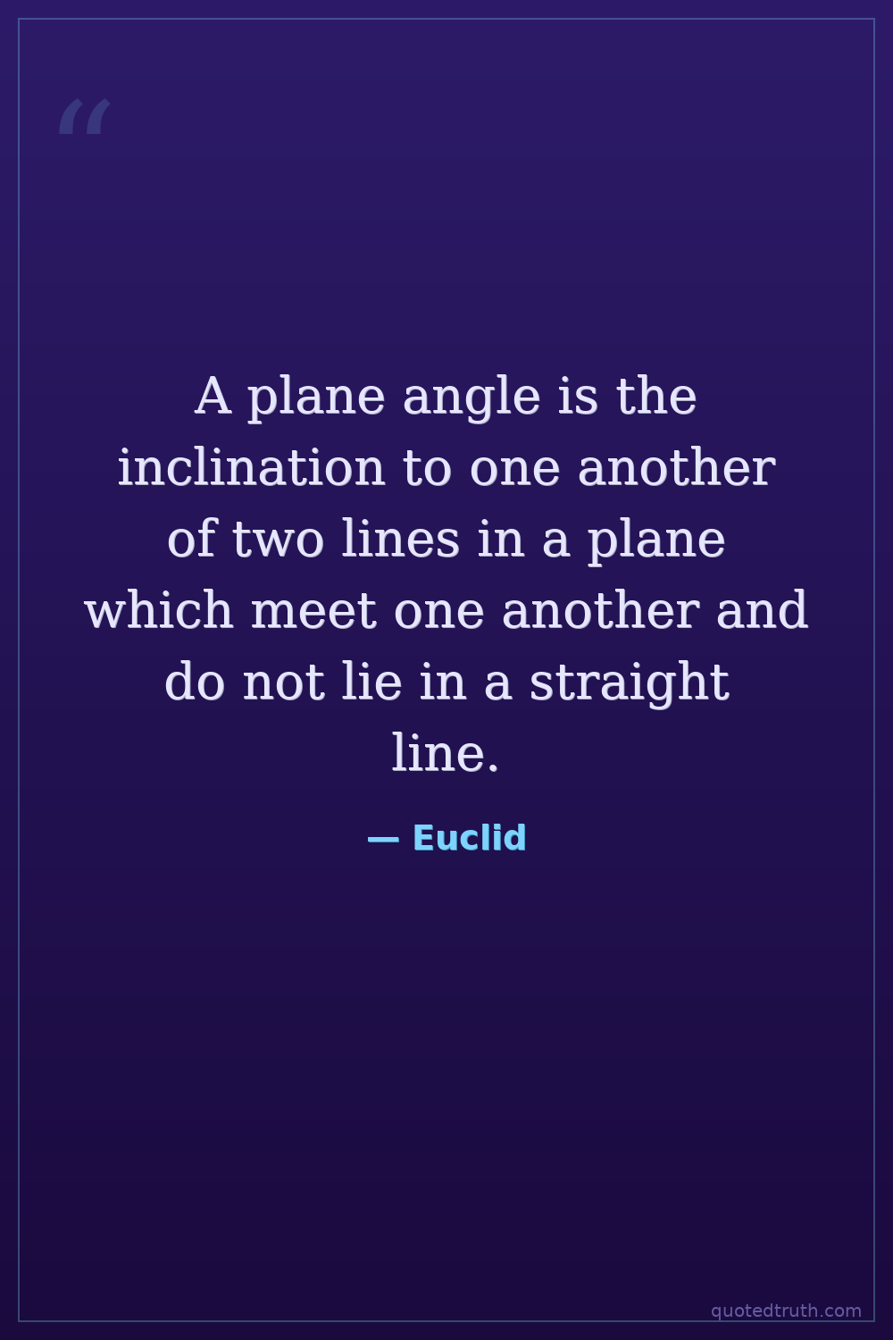 A plane angle is the inclination to one another of two lines in a plane which meet one another and do not lie in a straight line.