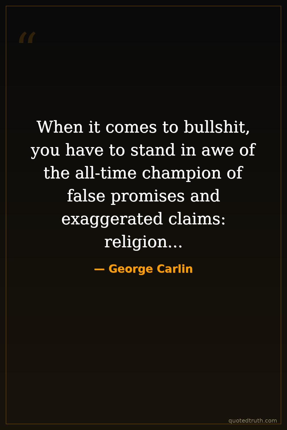When it comes to bullshit, you have to stand in awe of the all-time champion of false promises and exaggerated claims: religion...