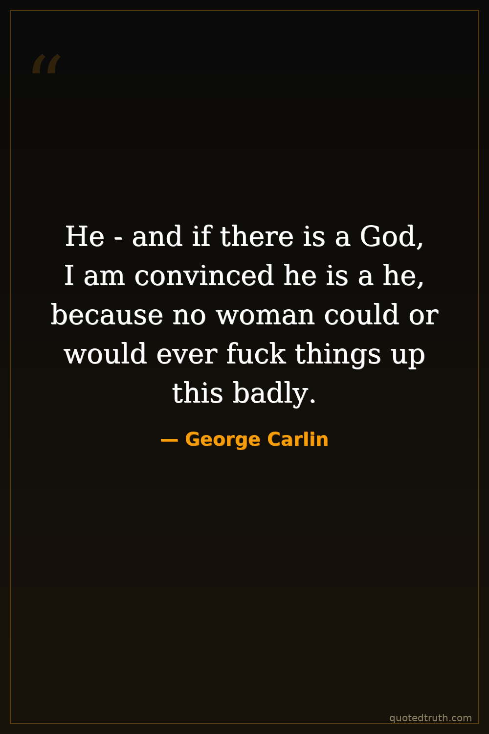 He - and if there is a God, I am convinced he is a he, because no woman could or would ever fuck things up this badly.