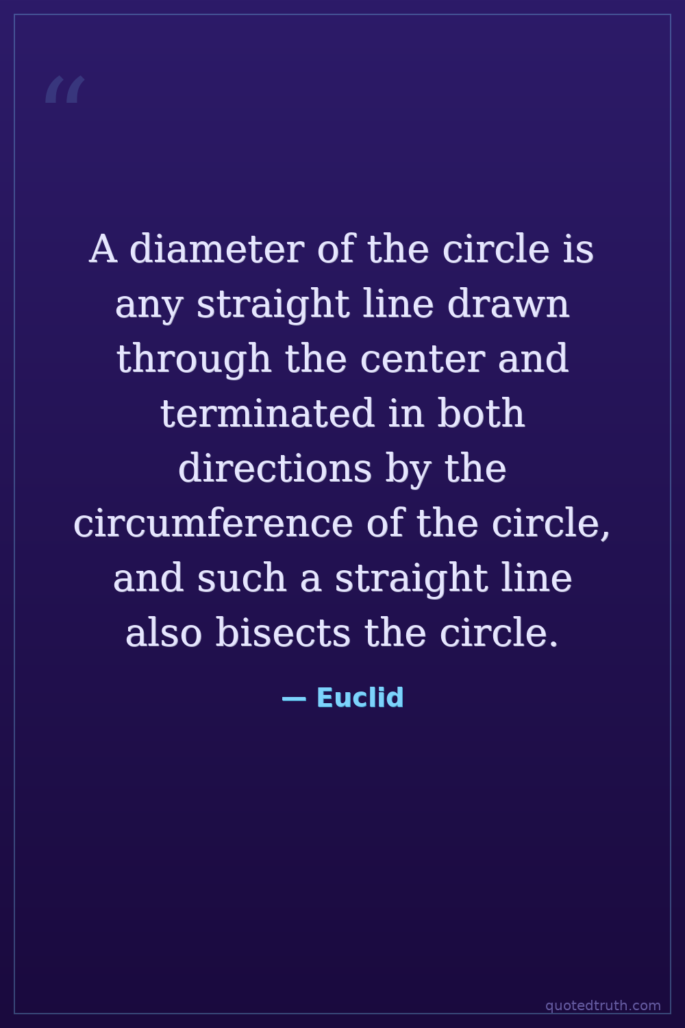 A diameter of the circle is any straight line drawn through the center and terminated in both directions by the circumference of the circle, and such a straight line also bisects the circle.