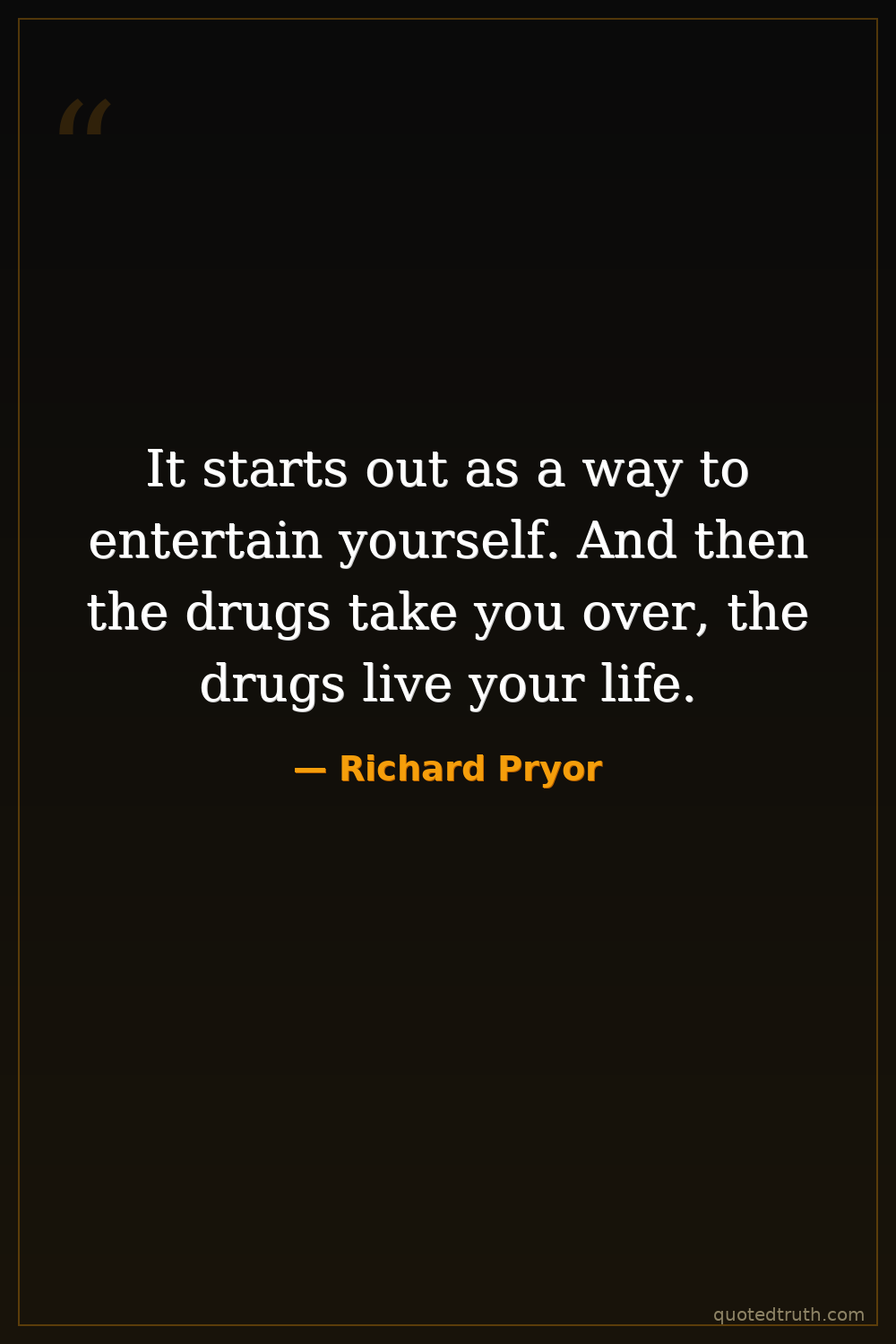 It starts out as a way to entertain yourself. And then the drugs take you over, the drugs live your life.