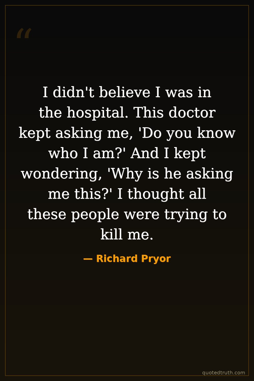 I didn't believe I was in the hospital. This doctor kept asking me, 'Do you know who I am?' And I kept wondering, 'Why is he asking me this?' I thought all these people were trying to kill me.