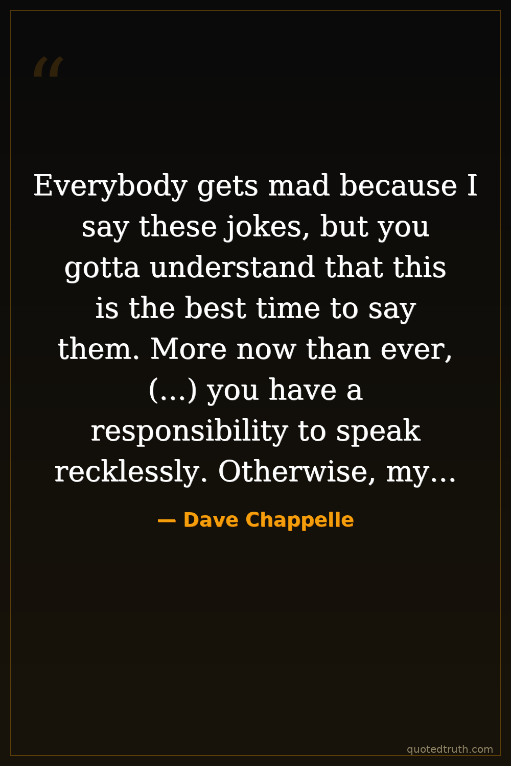 Everybody gets mad because I say these jokes, but you gotta understand that this is the best time to say them. More now than ever, (...) you have a responsibility to speak recklessly. Otherwise, my kids may never know what reckless talk sounds like. The joys of being wrong. I didn't come here to be right.