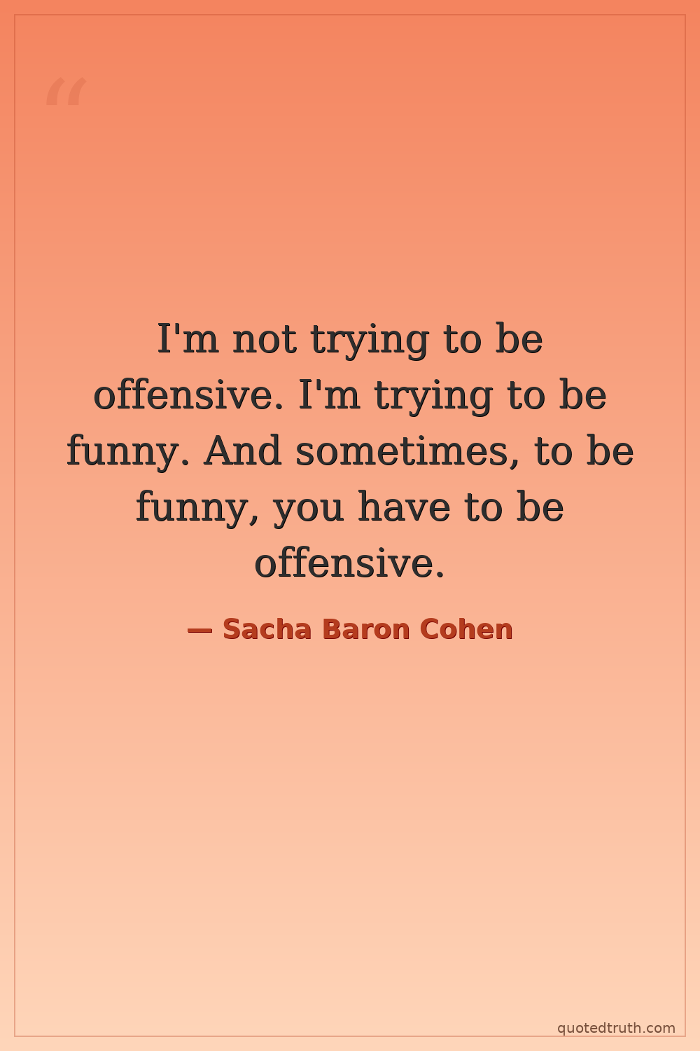 I'm not trying to be offensive. I'm trying to be funny. And sometimes, to be funny, you have to be offensive.