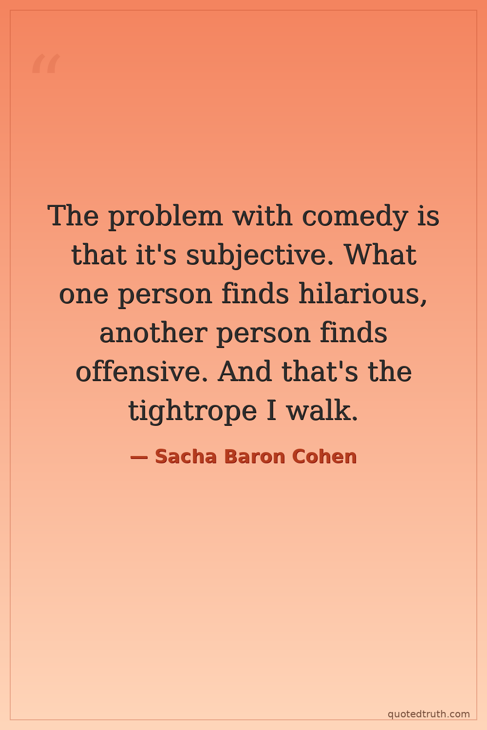 The problem with comedy is that it's subjective. What one person finds hilarious, another person finds offensive. And that's the tightrope I walk.