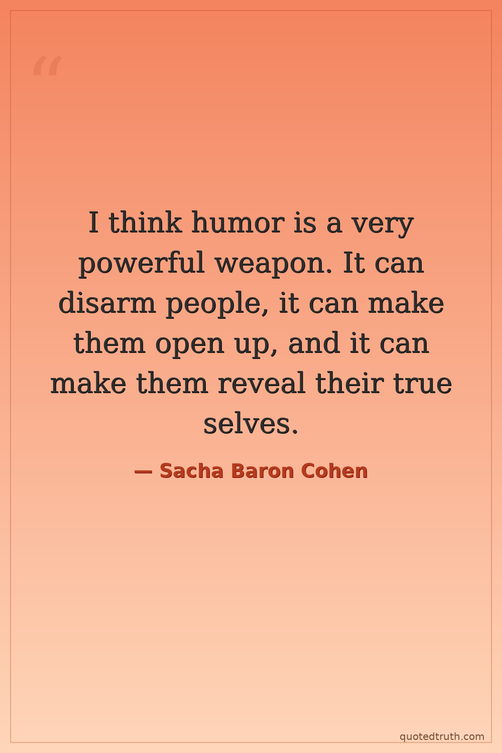 I think humor is a very powerful weapon. It can disarm people, it can make them open up, and it can make them reveal their true selves.