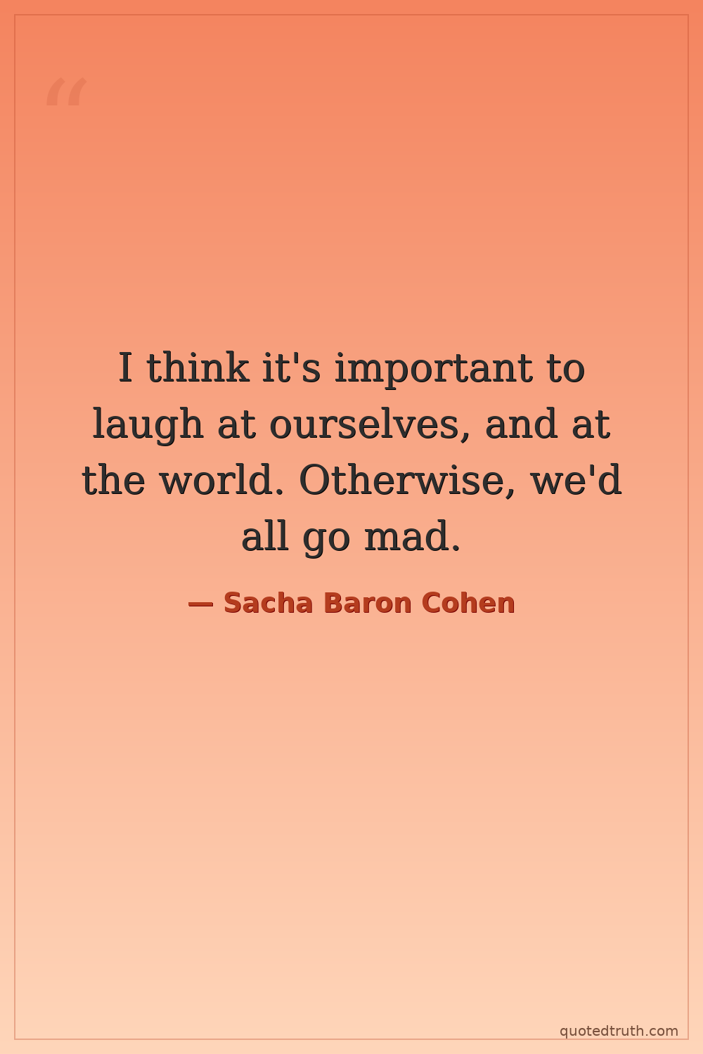 I think it's important to laugh at ourselves, and at the world. Otherwise, we'd all go mad.