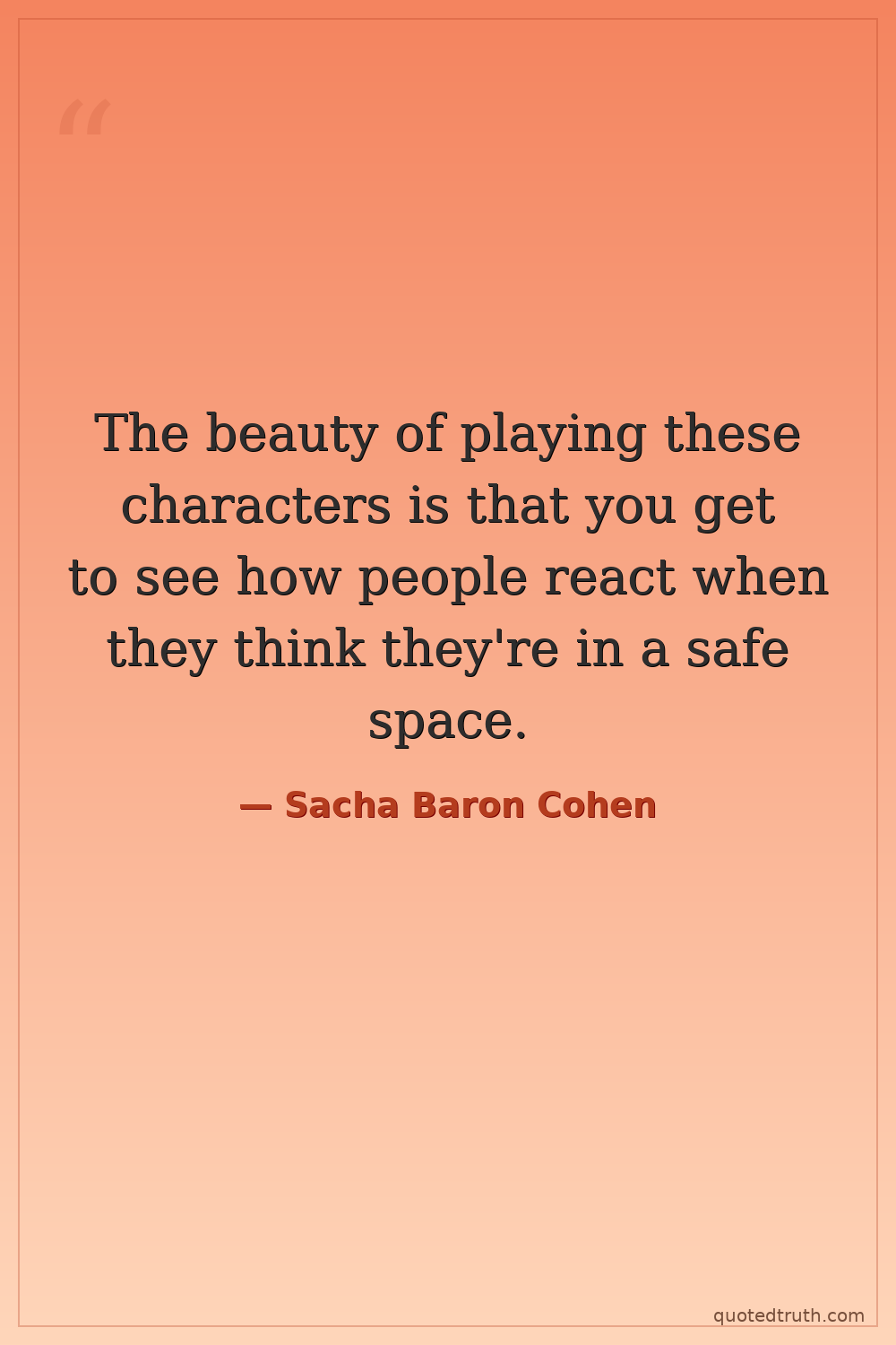 The beauty of playing these characters is that you get to see how people react when they think they're in a safe space.