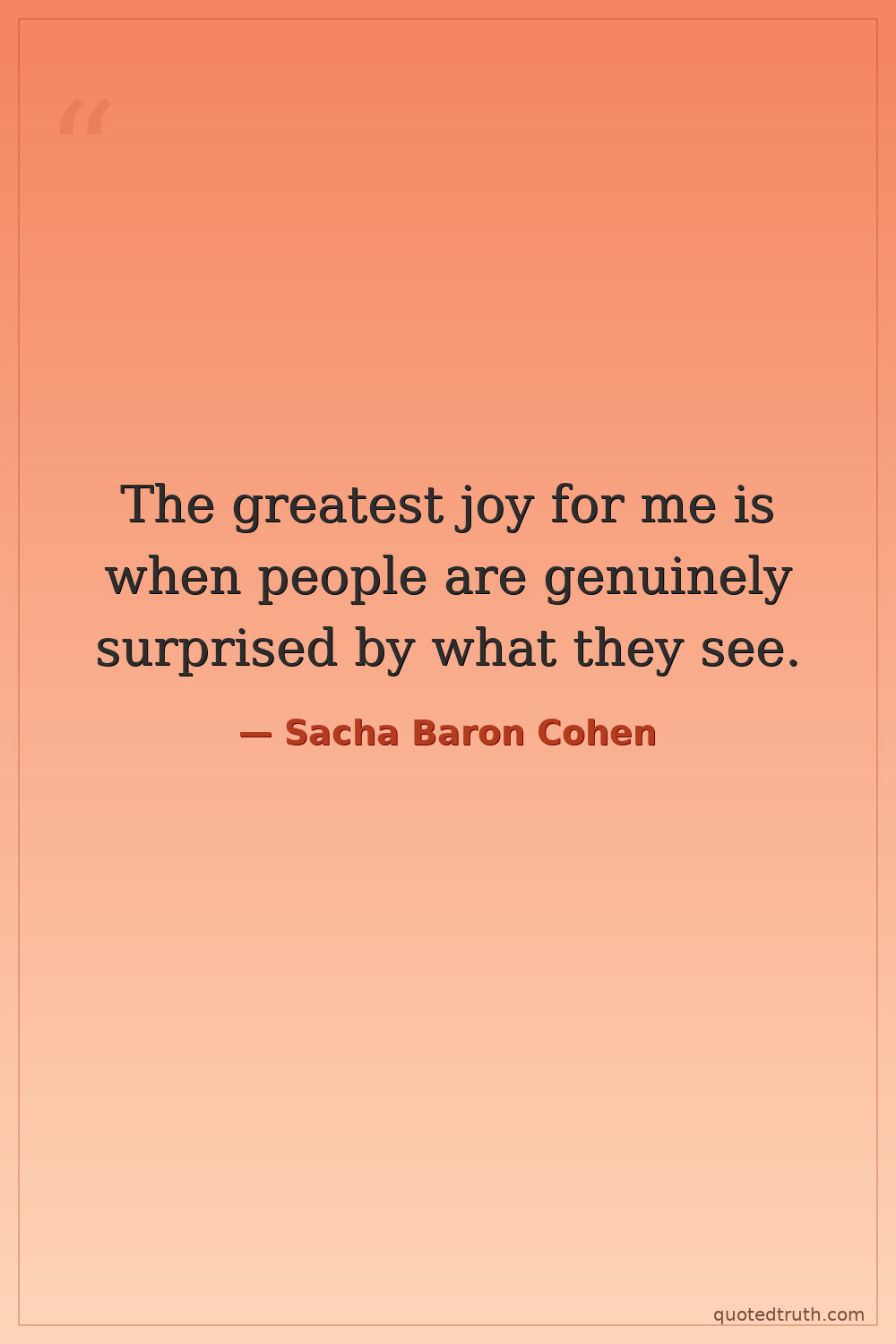 Controversial"I used to do stand-up, and I'd get the occasional laugh, but I'd never get that full-on, belly-aching laughter that Borat got. It's like a different kind of laugh. It's a laugh of shock, a laugh of di…"