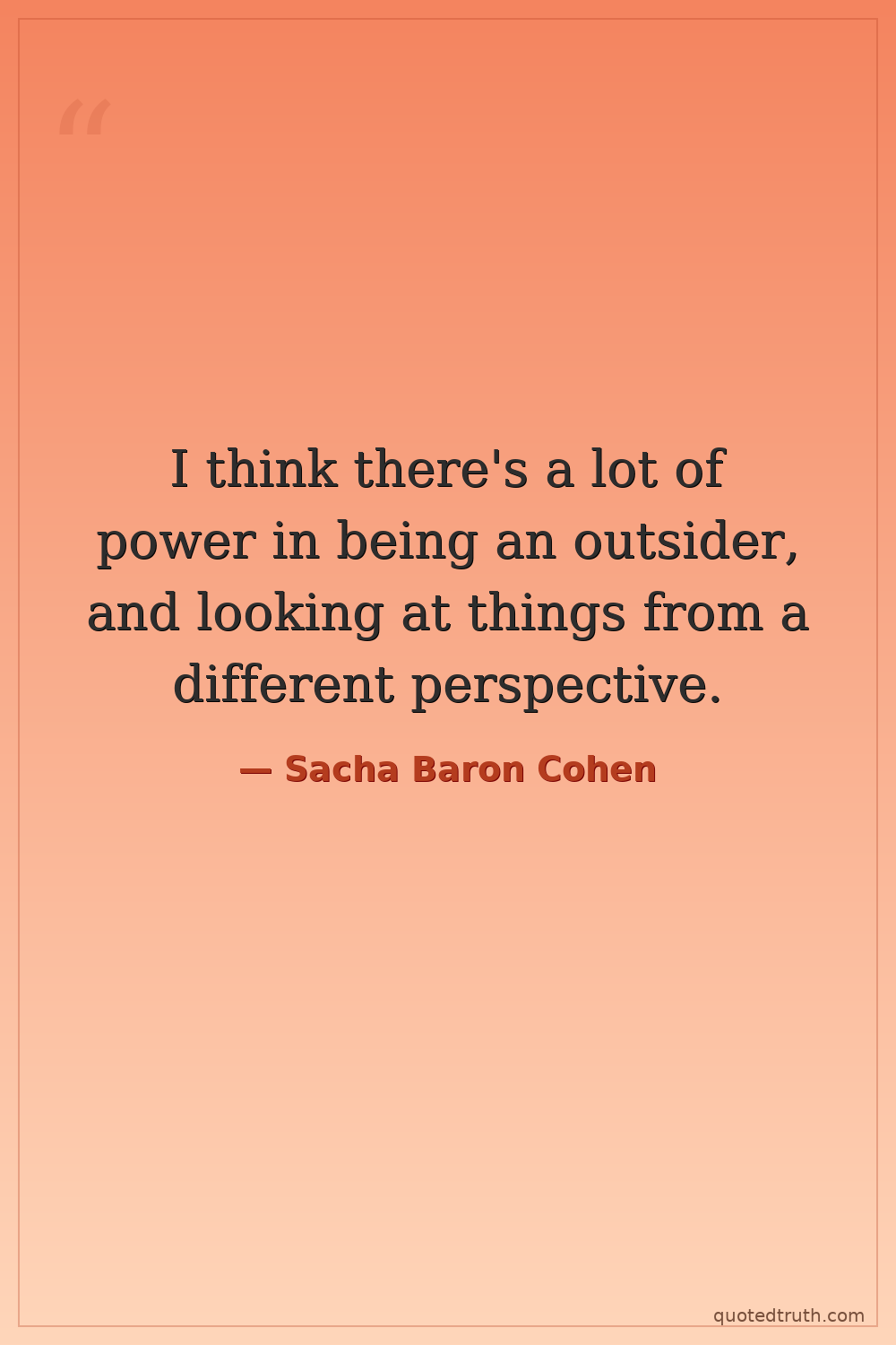 I think there's a lot of power in being an outsider, and looking at things from a different perspective.