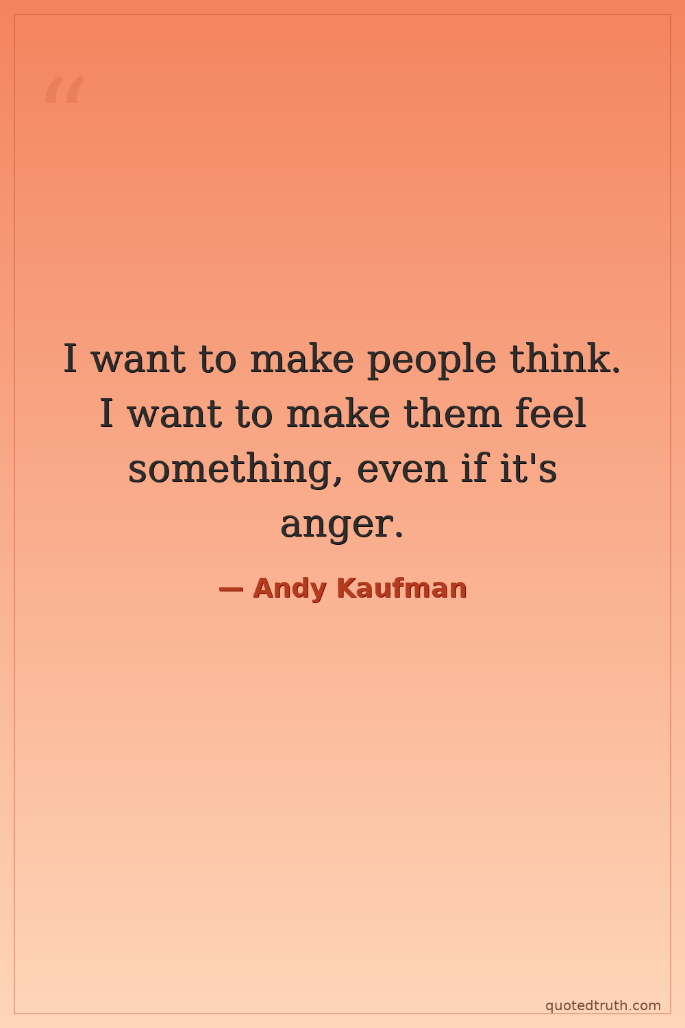 I want to make people think. I want to make them feel something, even if it's anger.