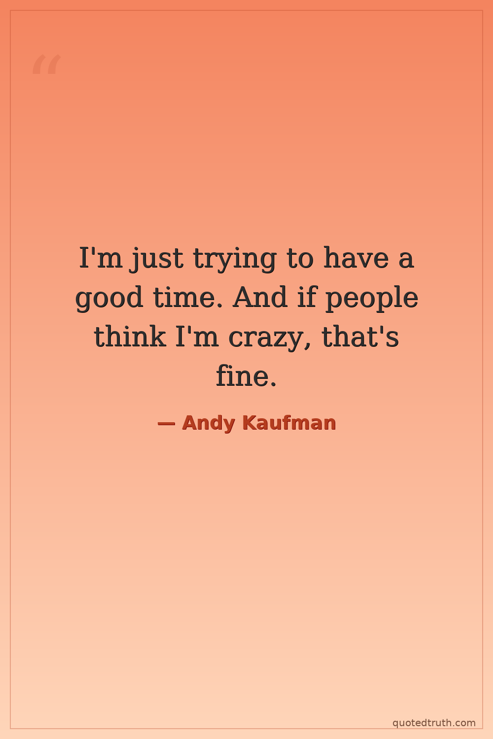 I'm just trying to have a good time. And if people think I'm crazy, that's fine.