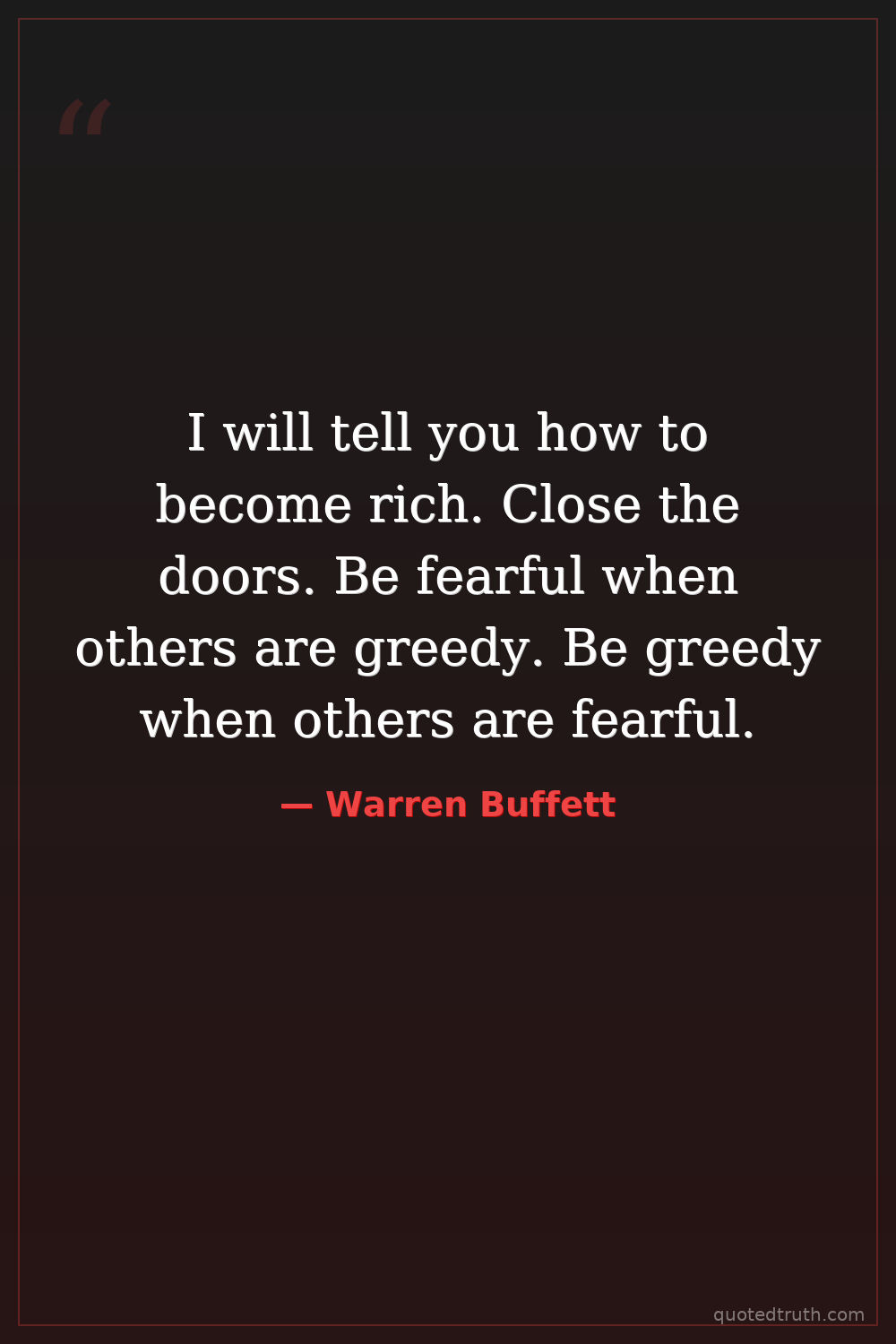 I will tell you how to become rich. Close the doors. Be fearful when others are greedy. Be greedy when others are fearful.