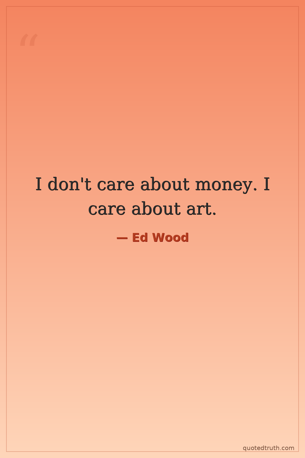 I don't care about money. I care about art.