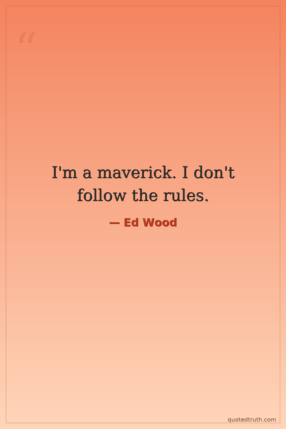 I'm a maverick. I don't follow the rules.