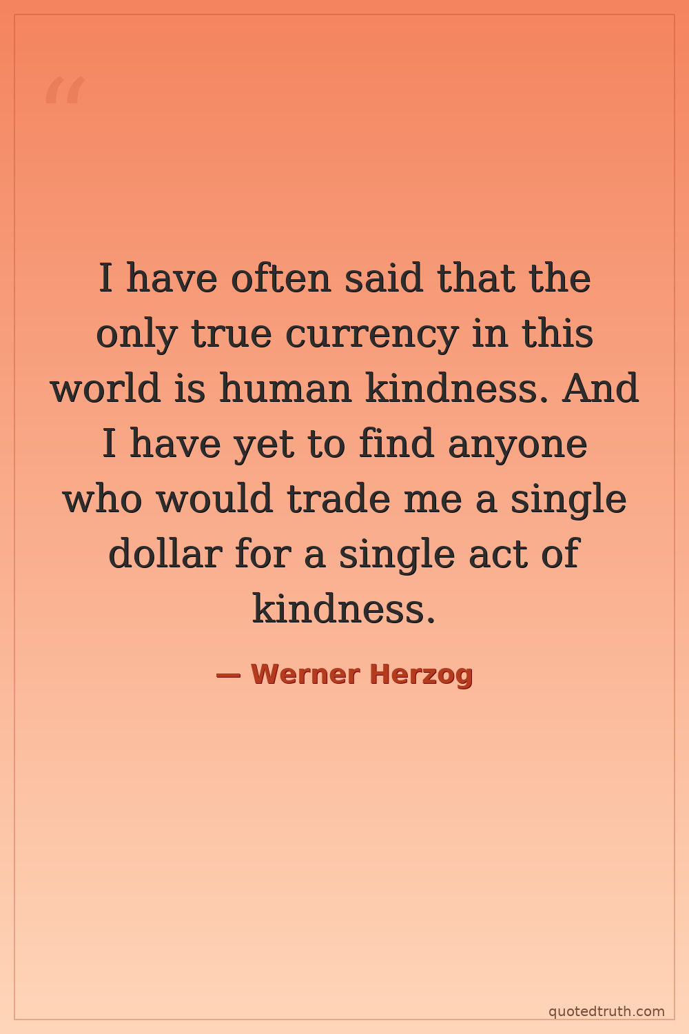 I have often said that the only true currency in this world is human kindness. And I have yet to find anyone who would trade me a single dollar for a single act of kindness.