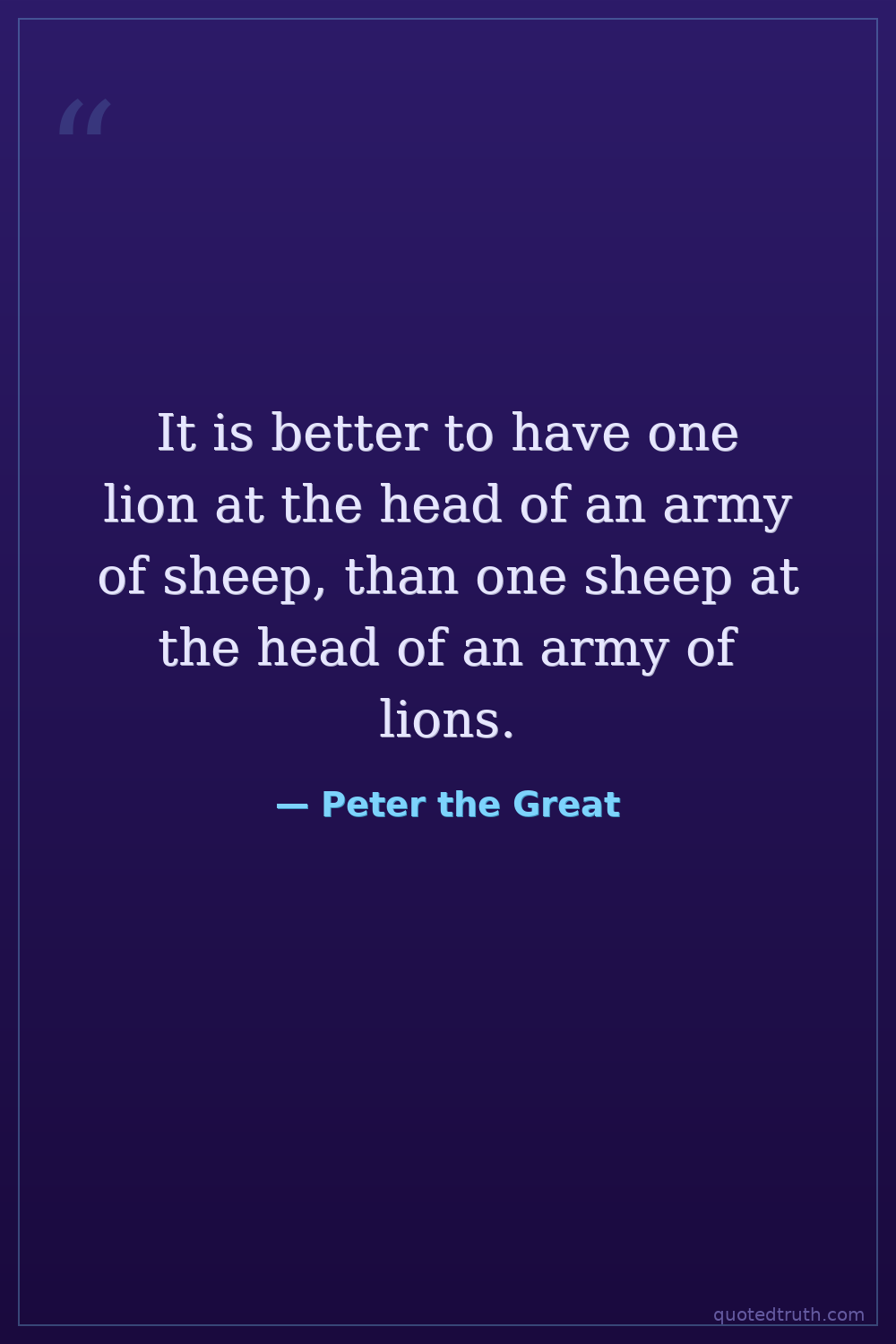 It is better to have one lion at the head of an army of sheep, than one sheep at the head of an army of lions.