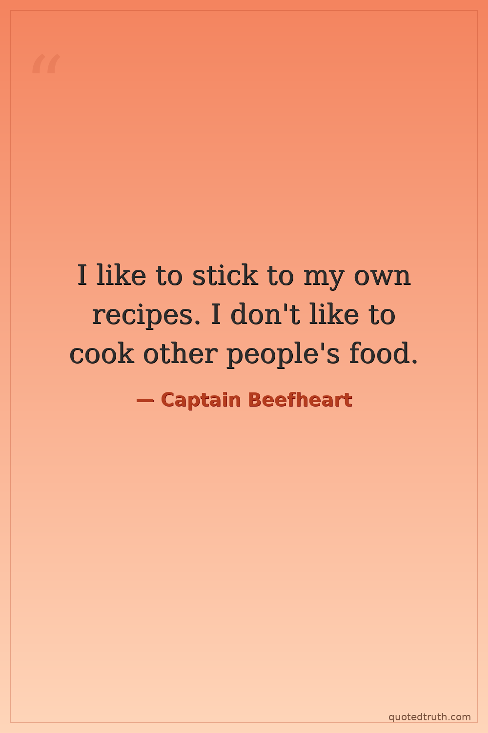 I like to stick to my own recipes. I don't like to cook other people's food.