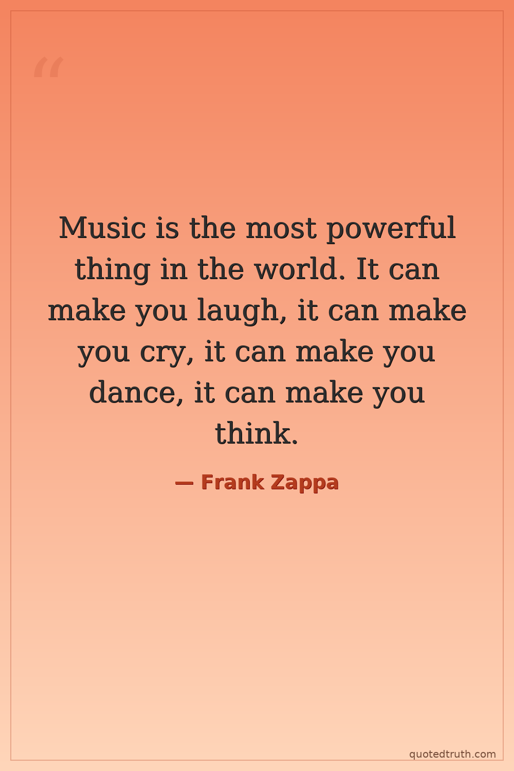 Music is the most powerful thing in the world. It can make you laugh, it can make you cry, it can make you dance, it can make you think.