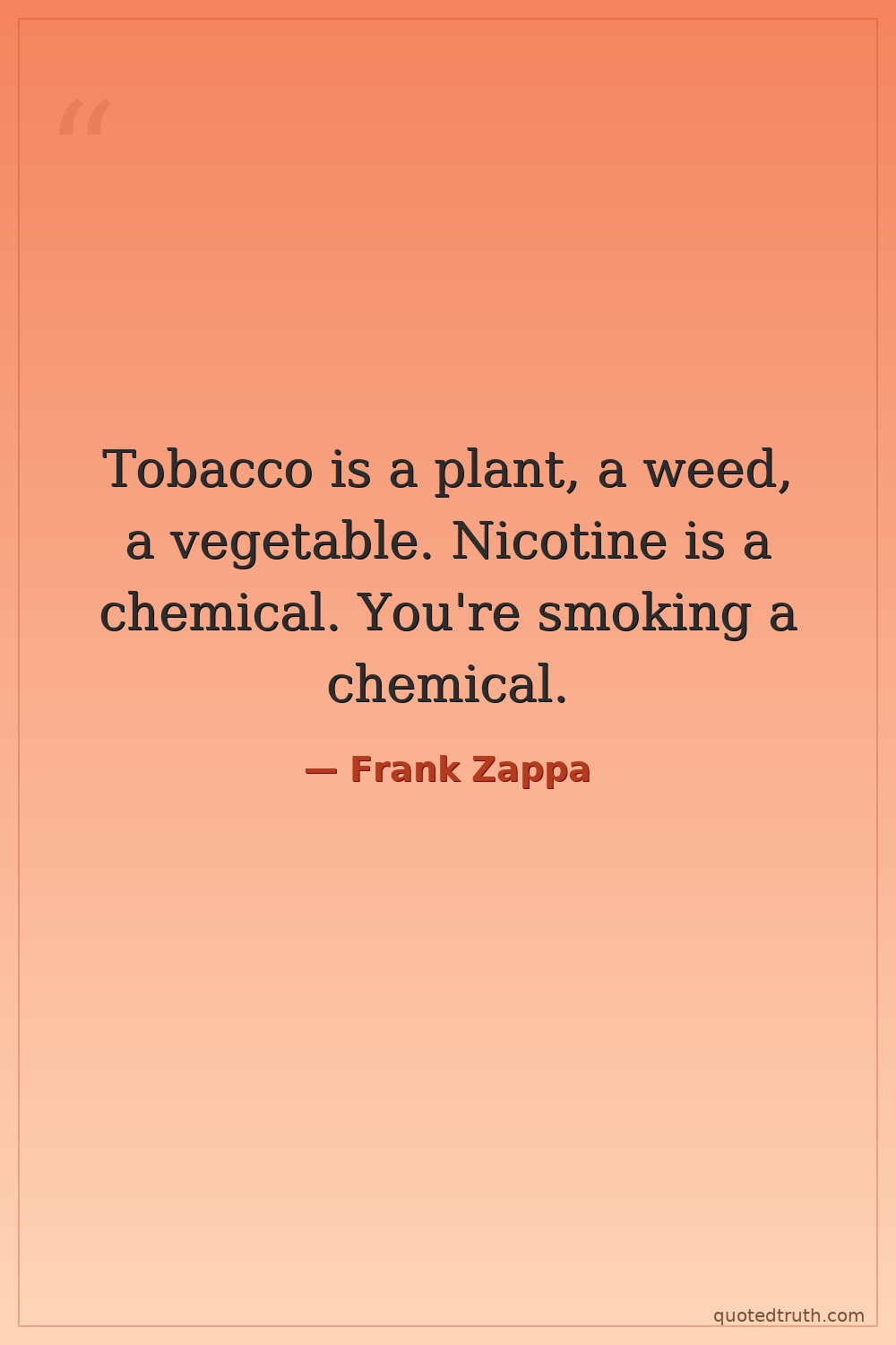 Tobacco is a plant, a weed, a vegetable. Nicotine is a chemical. You're smoking a chemical.