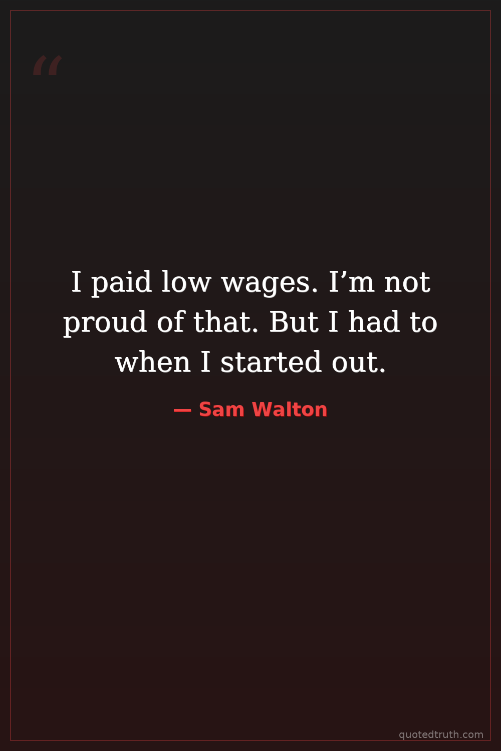 I paid low wages. I’m not proud of that. But I had to when I started out.