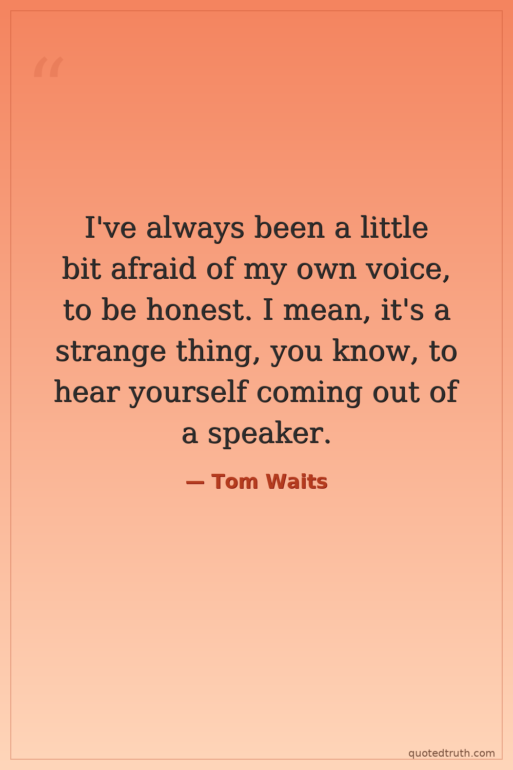 I've always been a little bit afraid of my own voice, to be honest. I mean, it's a strange thing, you know, to hear yourself coming out of a speaker.
