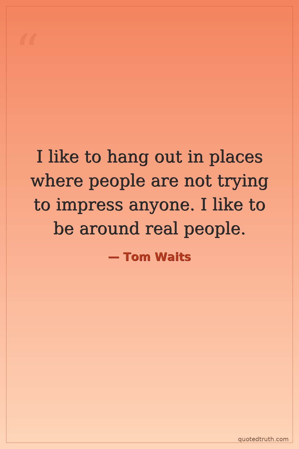 I like to hang out in places where people are not trying to impress anyone. I like to be around real people.