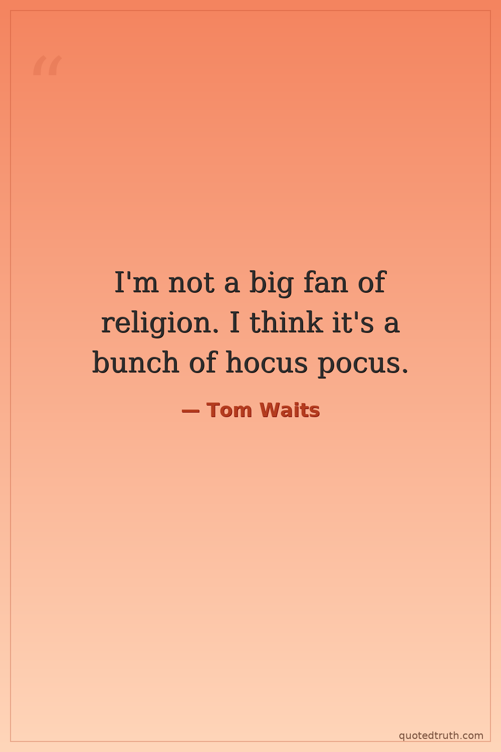 I'm not a big fan of religion. I think it's a bunch of hocus pocus.