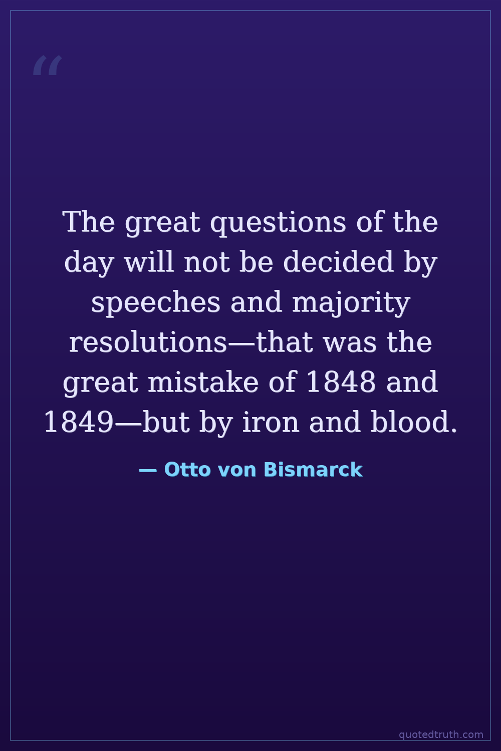 The great questions of the day will not be decided by speeches and majority resolutions—that was the great mistake of 1848 and 1849—but by iron and blood.