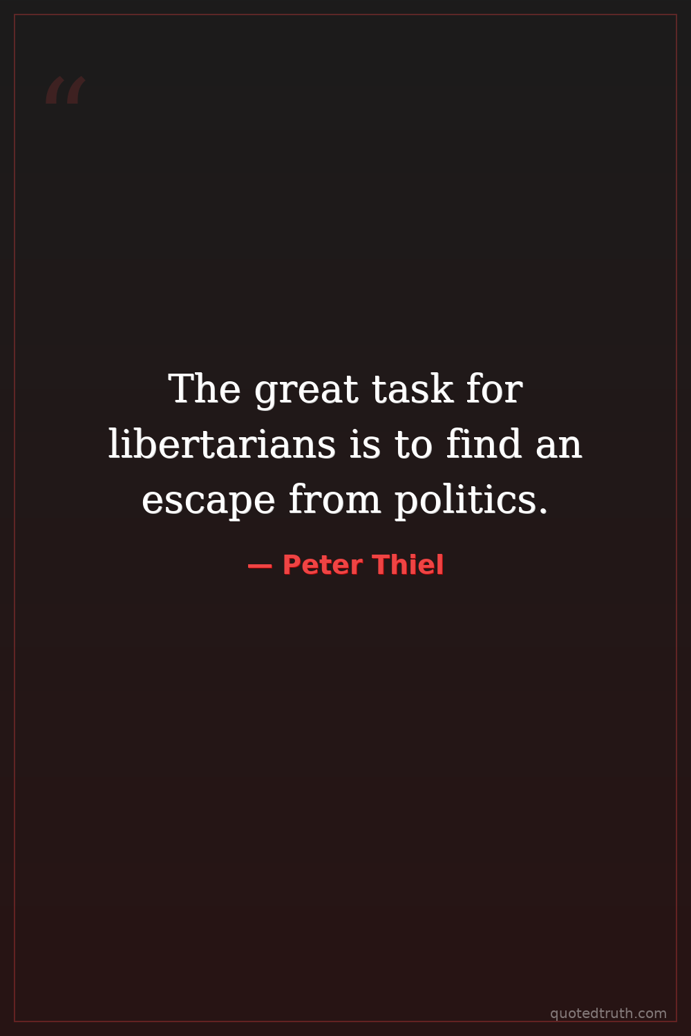 The great task for libertarians is to find an escape from politics.