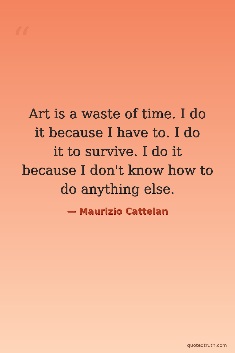 Art is a waste of time. I do it because I have to. I do it to survive. I do it because I don't know how to do anything else.