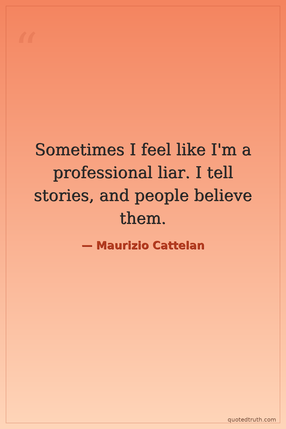 Sometimes I feel like I'm a professional liar. I tell stories, and people believe them.