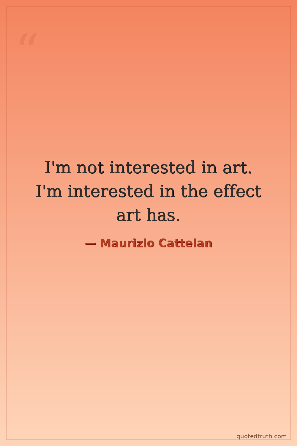 I'm not interested in art. I'm interested in the effect art has.