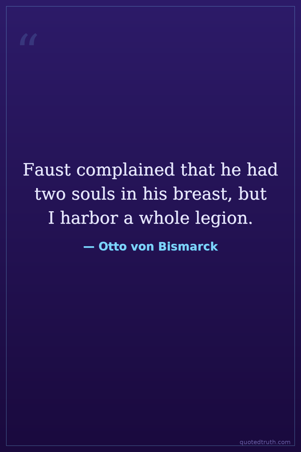 Faust complained that he had two souls in his breast, but I harbor a whole legion.