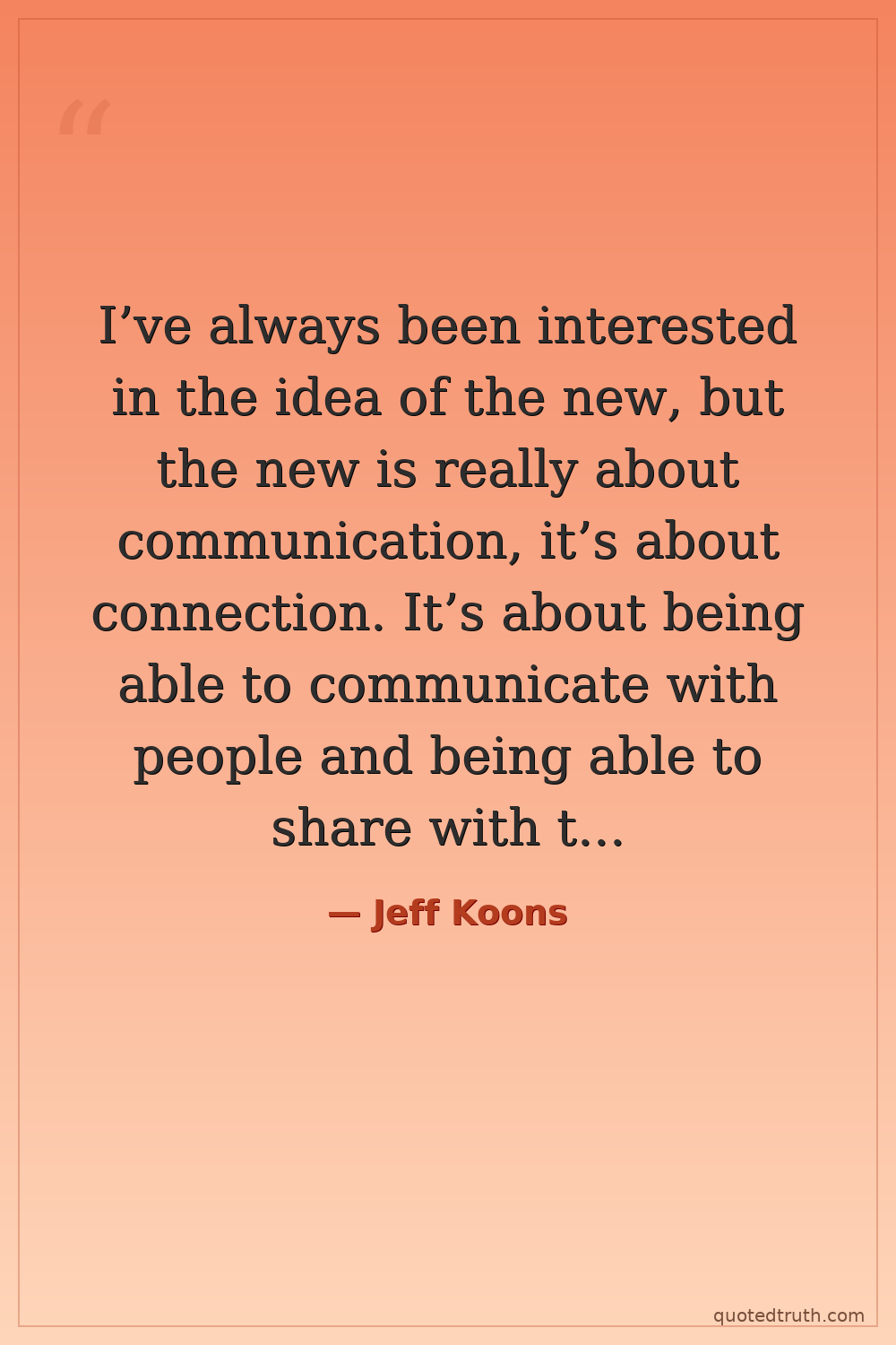 I’ve always been interested in the idea of the new, but the new is really about communication, it’s about connection. It’s about being able to communicate with people and being able to share with them the excitement of what it is to be a human being and to be alive.