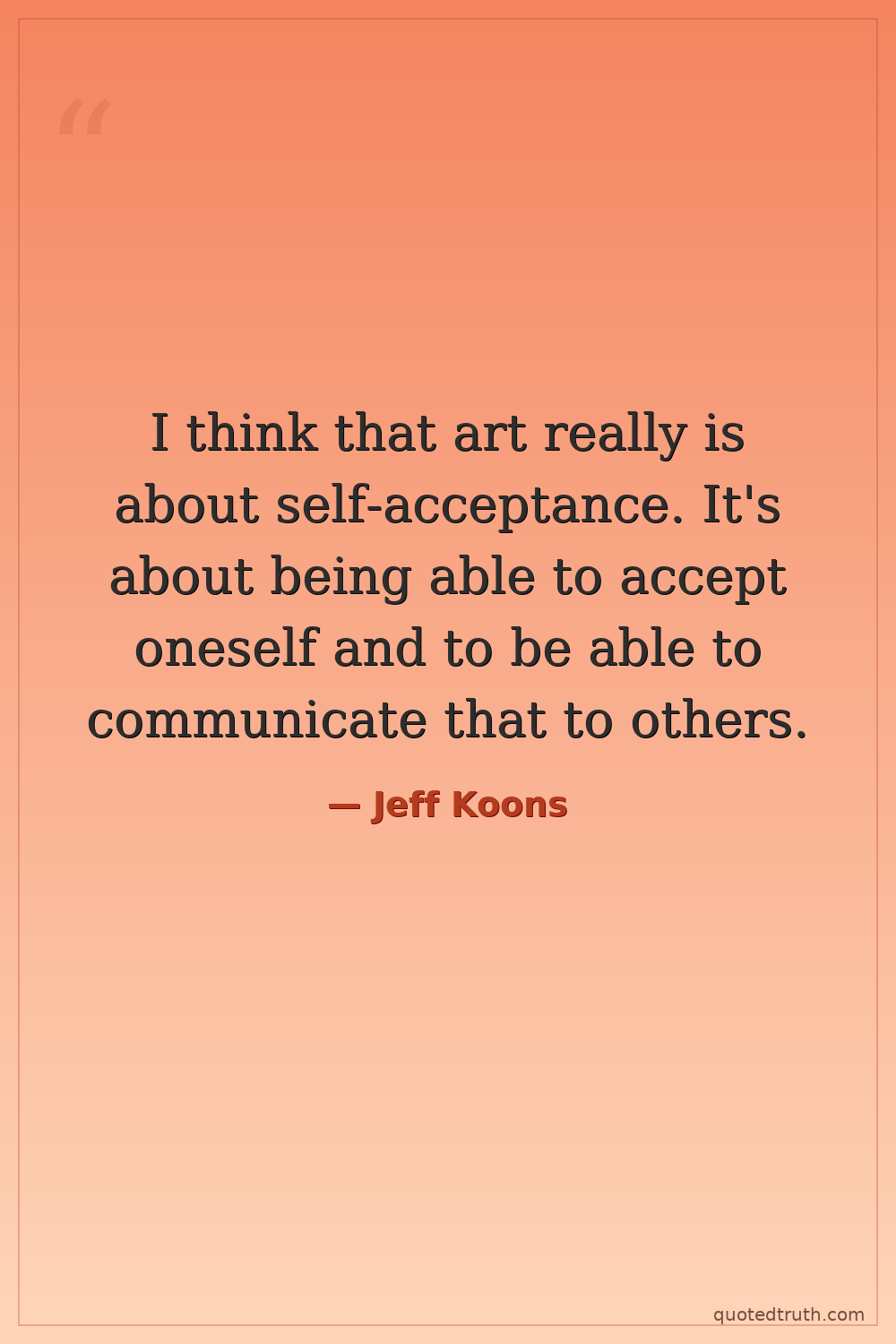 I think that art really is about self-acceptance. It's about being able to accept oneself and to be able to communicate that to others.