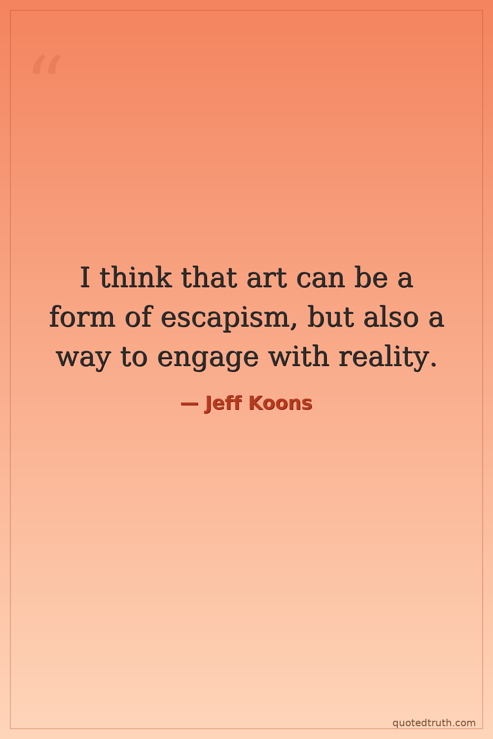 I think that art can be a form of escapism, but also a way to engage with reality.