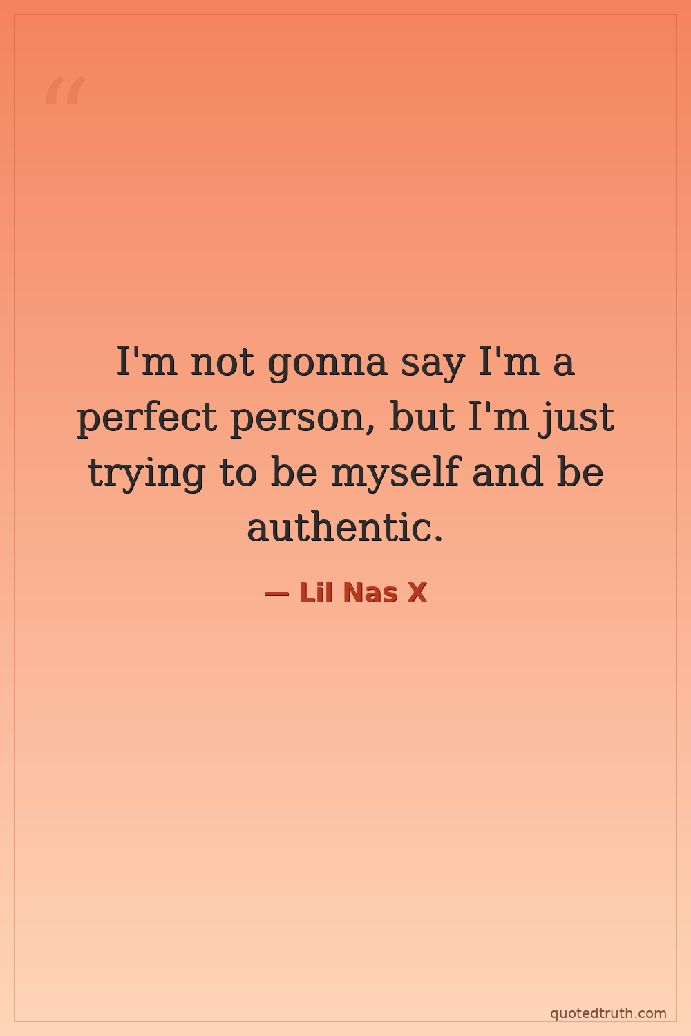 I'm not gonna say I'm a perfect person, but I'm just trying to be myself and be authentic.