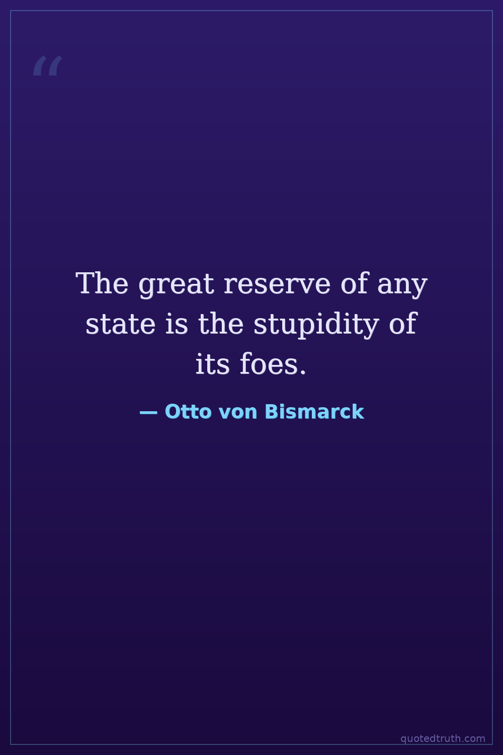 The great reserve of any state is the stupidity of its foes.