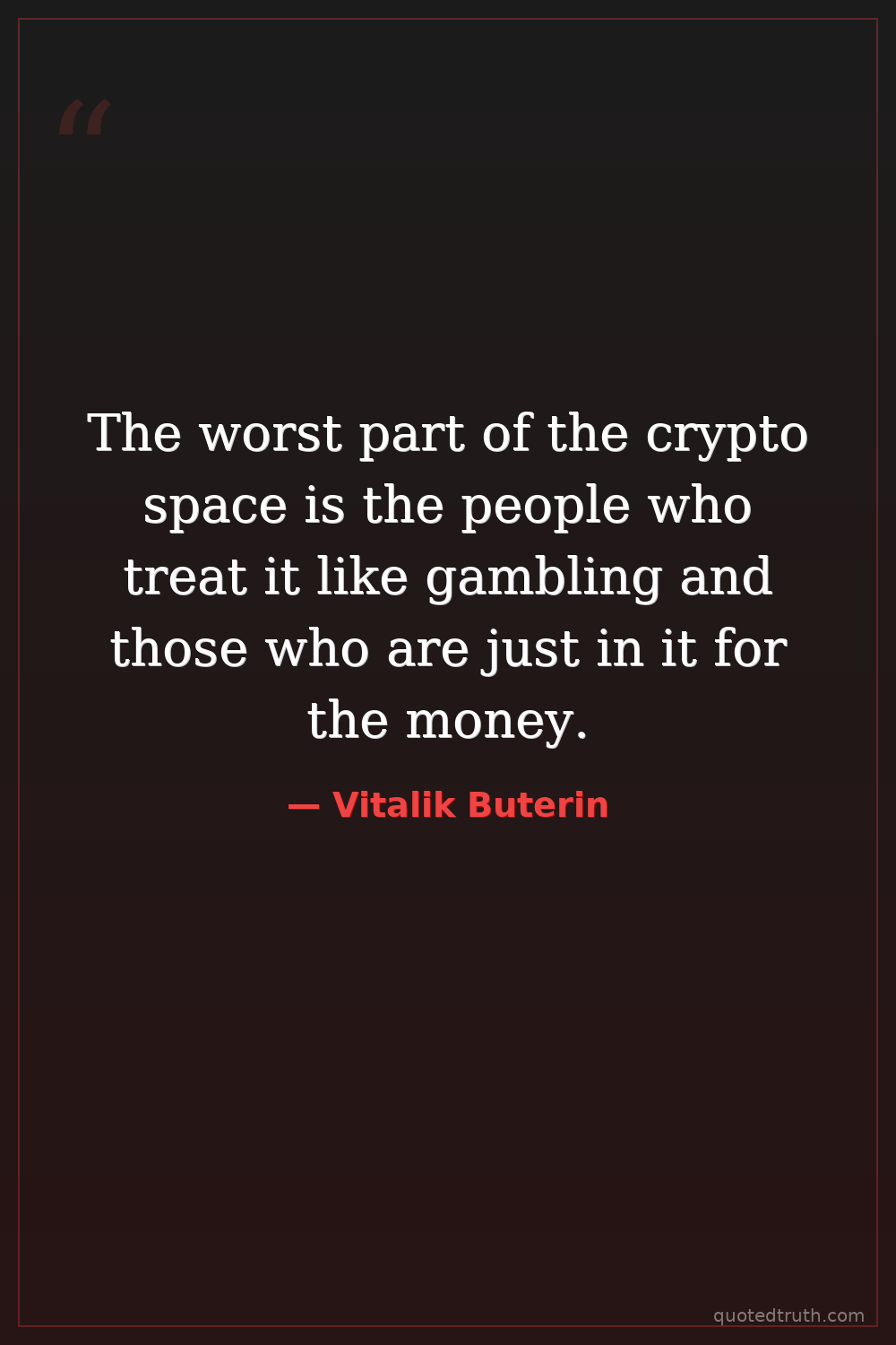 The worst part of the crypto space is the people who treat it like gambling and those who are just in it for the money.