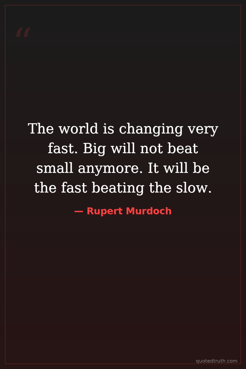The world is changing very fast. Big will not beat small anymore. It will be the fast beating the slow.