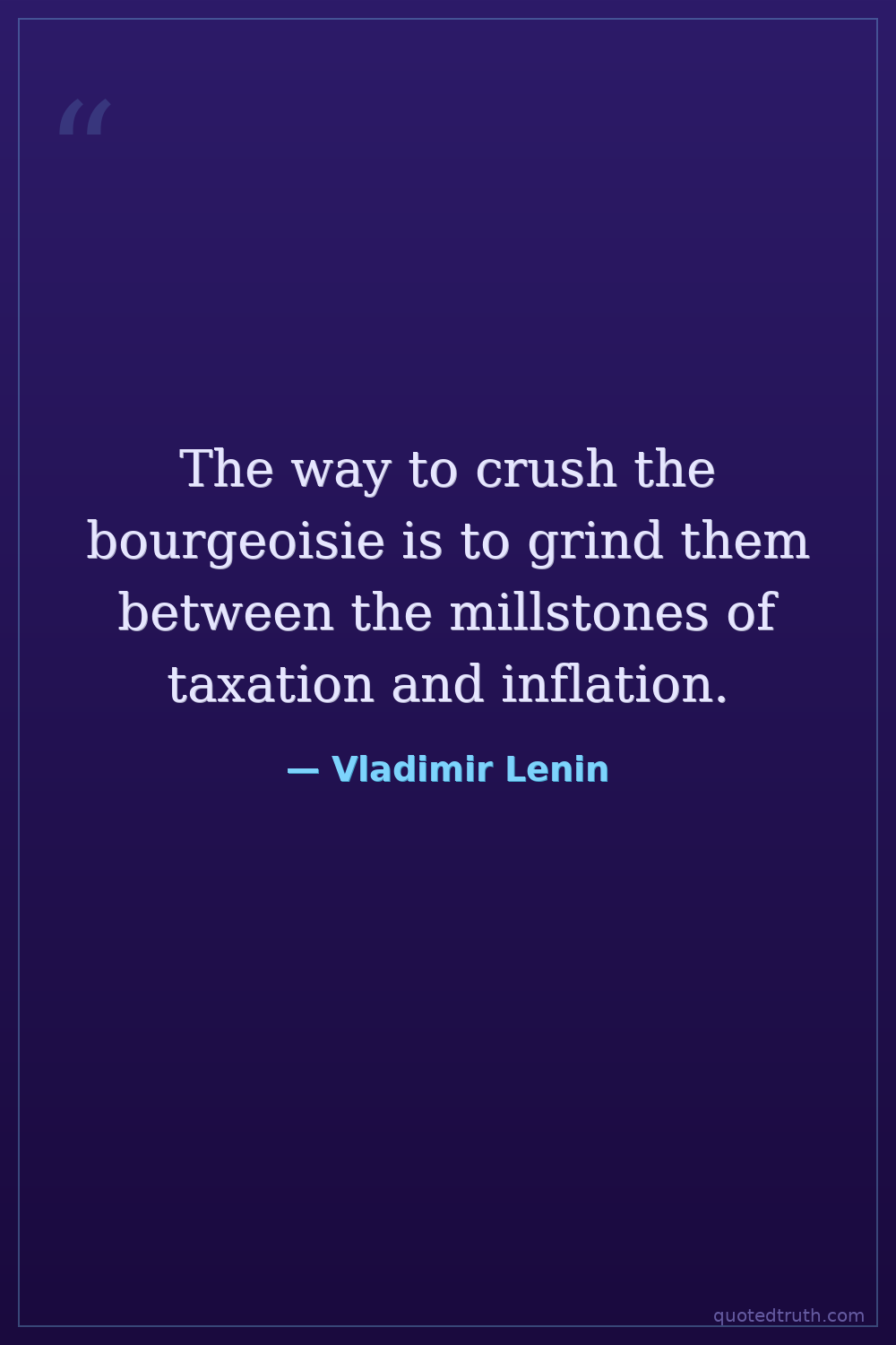 The way to crush the bourgeoisie is to grind them between the millstones of taxation and inflation.